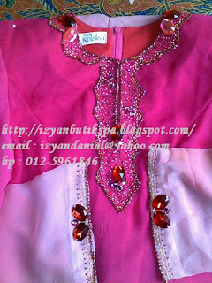 Koleksi raya jugak.Manik tabur dgn batu dijahit agak panjang mengikut kehendak customer,tapi untuk tgn beliau nak yang sgt simple takut berat sgt memangdangkan kain tu sgtla nipis.i hope she likes it